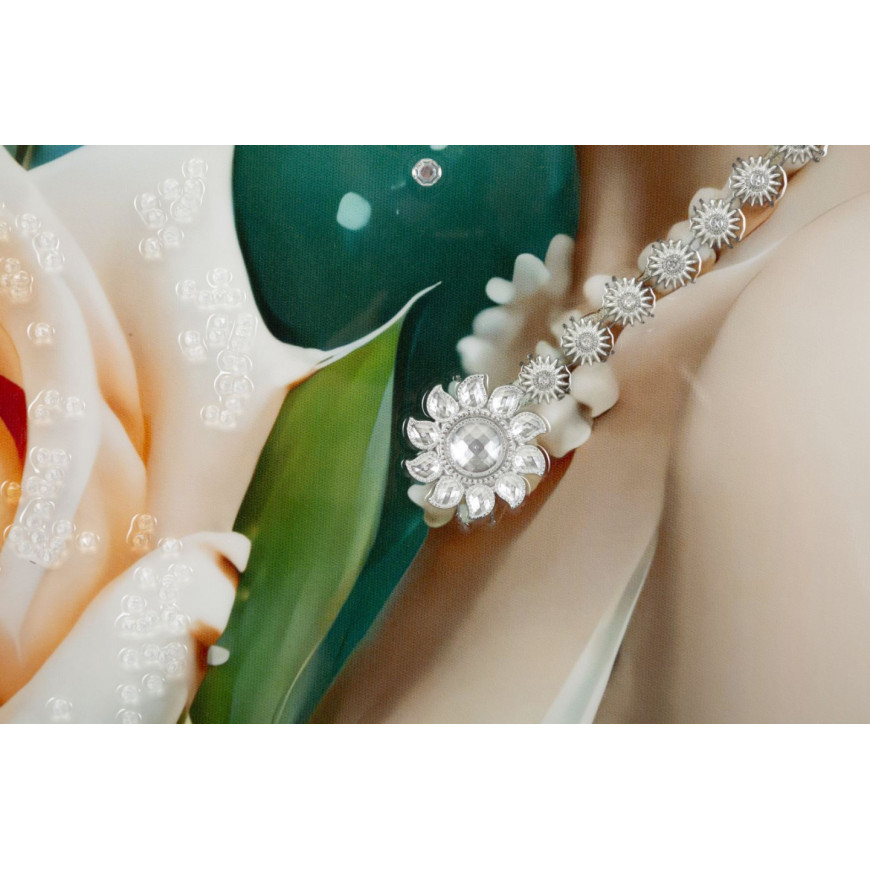 Dipinto su tela laccato con cornice Fantasy incarna eleganza e fascino onirico. Il ritratto femminile, impreziosito da perle e delicate rose, trasmette un’aura romantica e sofisticata. Perfetto per ambienti raffinati, aggiunge un tocco di magia e bellezza senza tempo.