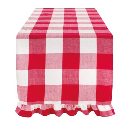 E’ realizzato con un tessuto a quadri nei toni del bianco e del rosso, perfetto come striscia centrotavola per un’apparecchiatura allegra e dall’aria country